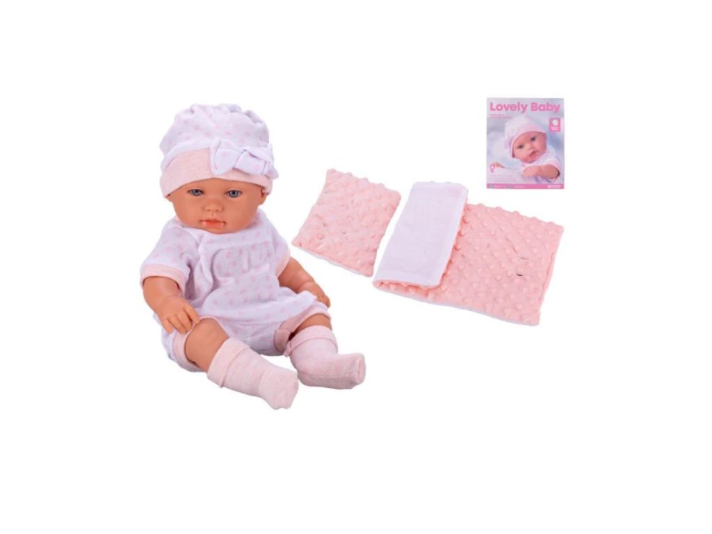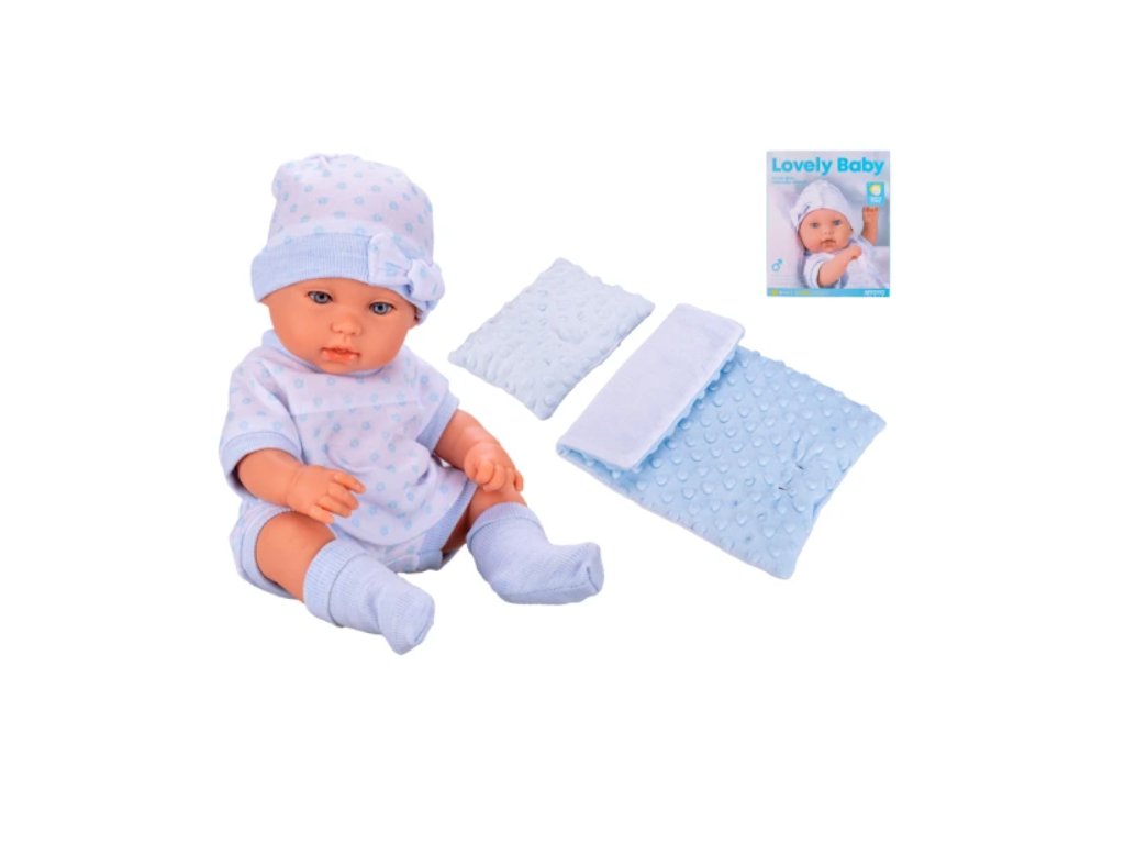 Roztomilé miminko s peřinkami 👶 potěší všechny malé maminky! Panenka má tvrdé tělíčko o velikosti 33 cm a je oblečena do roztomilého oblečku s čepičkou a ponožkami, které lze svléknout a znovu obléknout. 🍼