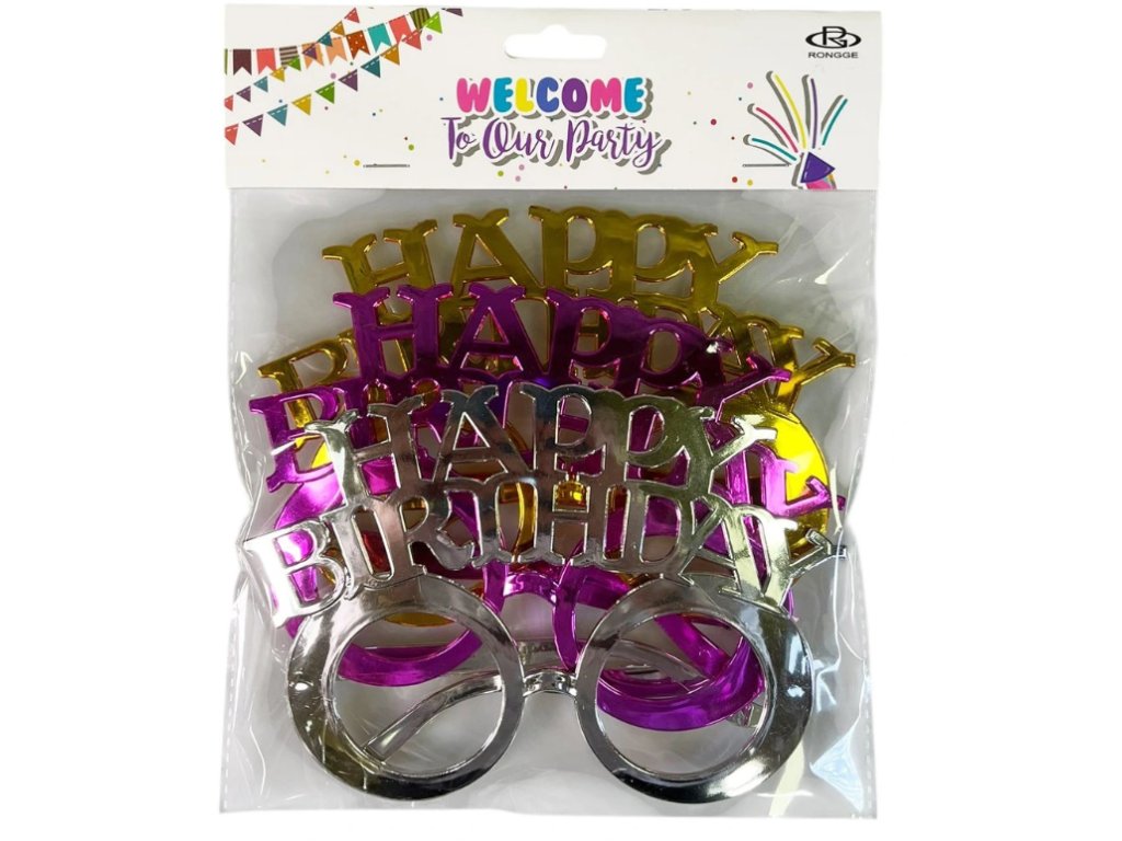 party brýle, happy birthday brýle, brýle na oslavu, narozeninové brýle, zábavné party brýle, brýle do fotokoutku, barevné brýle na oslavu, party doplňky, brýle s nápisem Happy Birthday, narozeninové doplňky, vtipné brýle