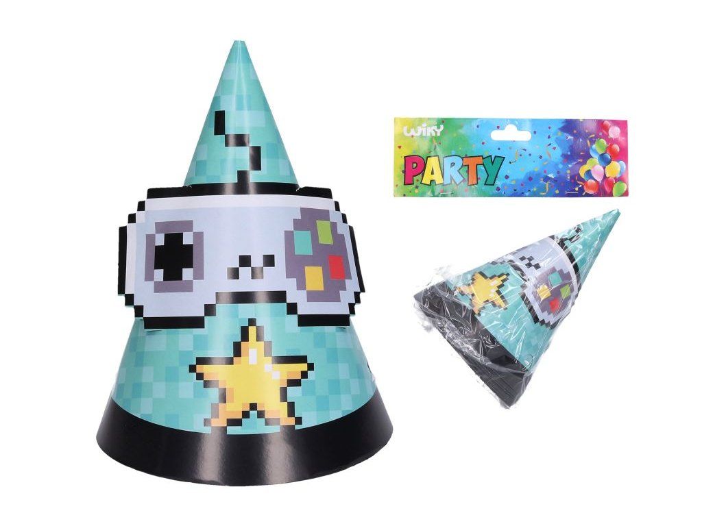 Vytvořte tu správnou atmosféru na oslavě s párty čepičkami Game pro všechny milovníky počítačových her. Balení obsahuje 6 kusů papírových čepiček, které jsou ideální pro narozeninové oslavy, herní večírky nebo tematické párty.
