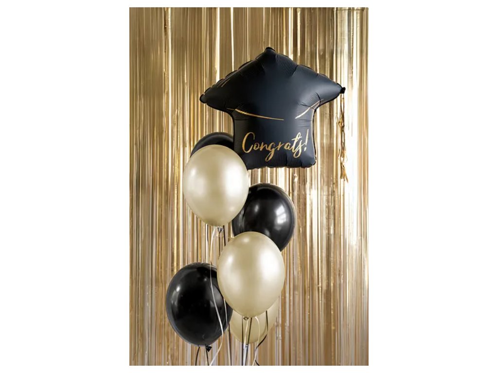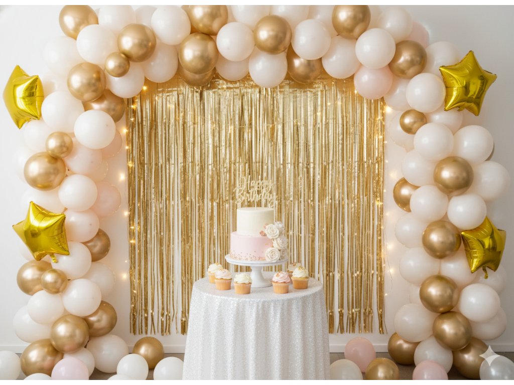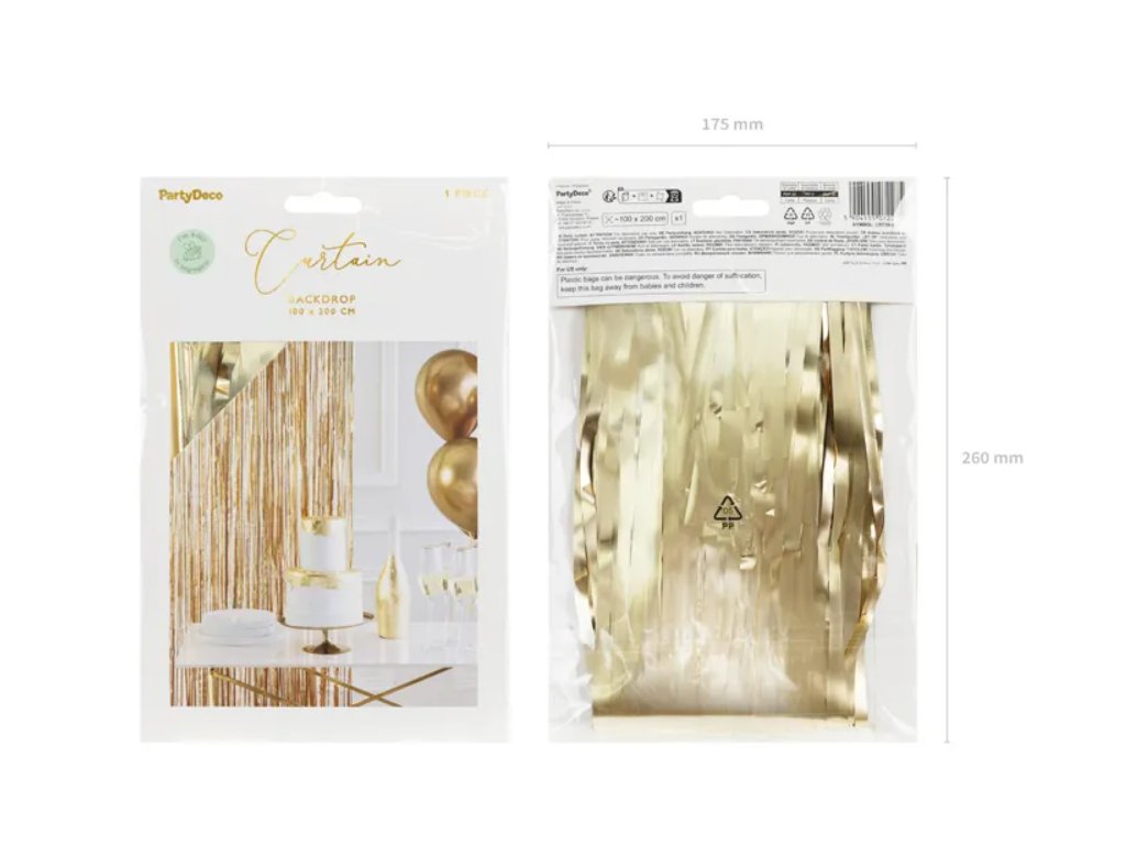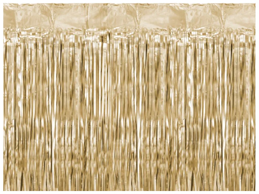 Závěs lze snadno zavěsit na zeď, do dveří nebo použít jako pozadí do fotokoutku, kde krásně vynikne na fotkách. Jeho metalický vzhled ve zlaté barvě dodá každému prostoru styl a slavnostní lesk. Kombinujte s balónky nebo girlandami a vytvořte si vlastní dekoraci snů!