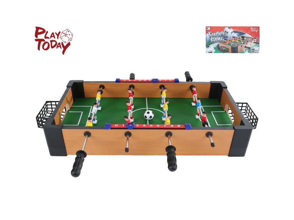 Zažijte fotbalové napětí s kompaktním stolním fotbálkem Play Today! Tento model o rozměrech 40,5×22×7 cm je ideální do dětského pokoje, herny nebo na cesty.
