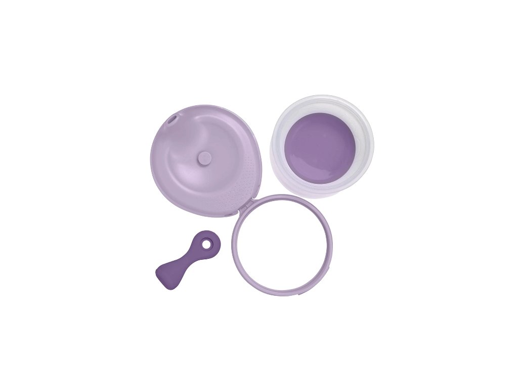 Přiložený uzávěr se neztratí a zároveň se pohodlně otáčí, takže nepřekáží při krmení a udržuje obsah čistý. Uzávěr navíc těsní a nehrozí nepořádek v taškách nebo kočárcích!