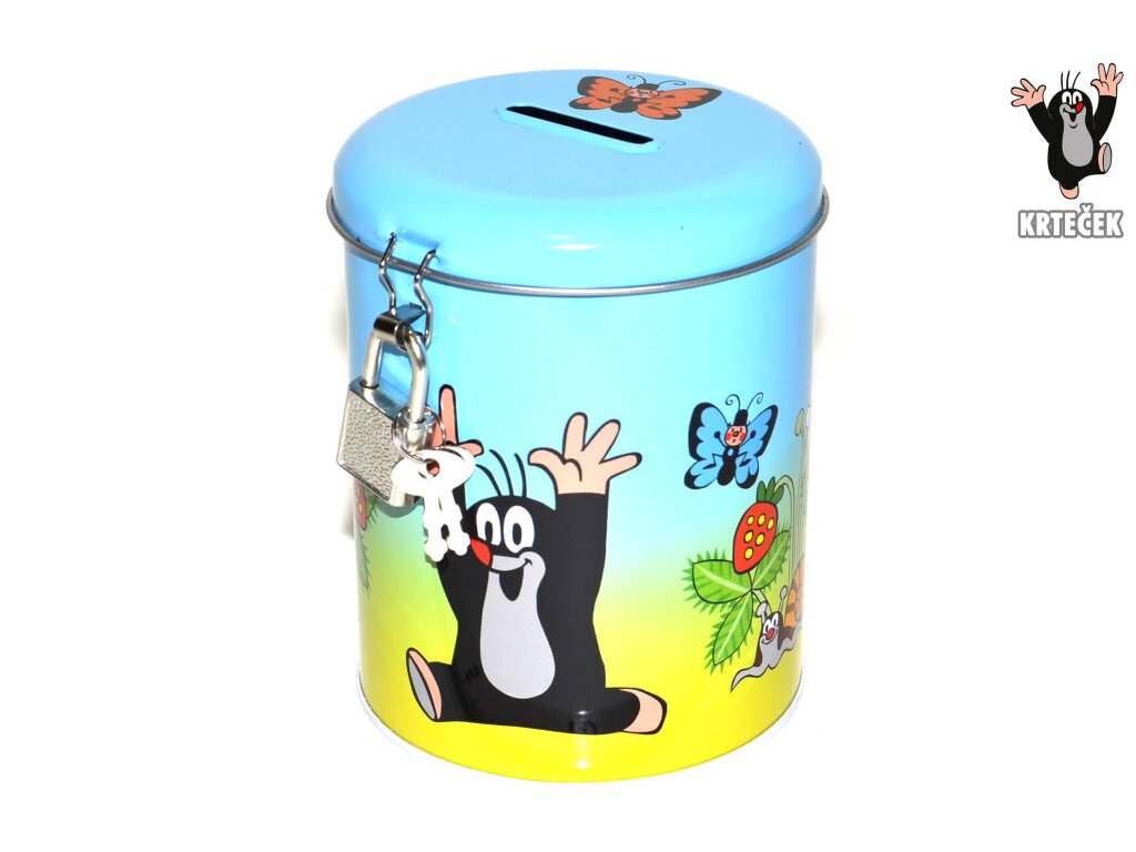 🐾 Pokladnička Krtek je praktická a zábavná pomůcka pro děti, které se chtějí učit spořit a odkládat si kapesné. Válec je vyroben z plechu a zdobený motivem Krtečka a jeho přátel.