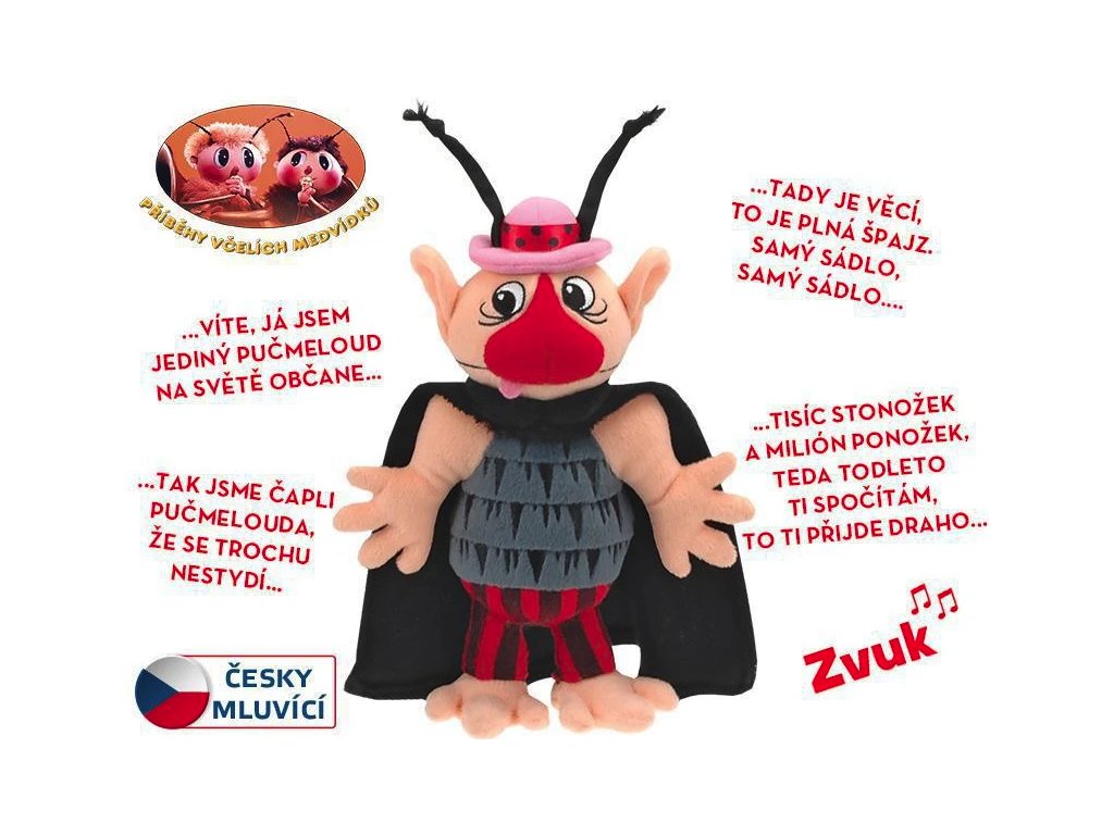 Plyšový Pučmeloud z kultovního večerníčku Příběhy včelích medvídků je skvělým kamarádem pro všechny malé fanoušky čmeláků, medu a veselých hlášek. Tento česky mluvící plyšák po stisknutí bříška přehrává typické hlasy a zvuky, které děti okamžitě poznají – a zamilují si je.
