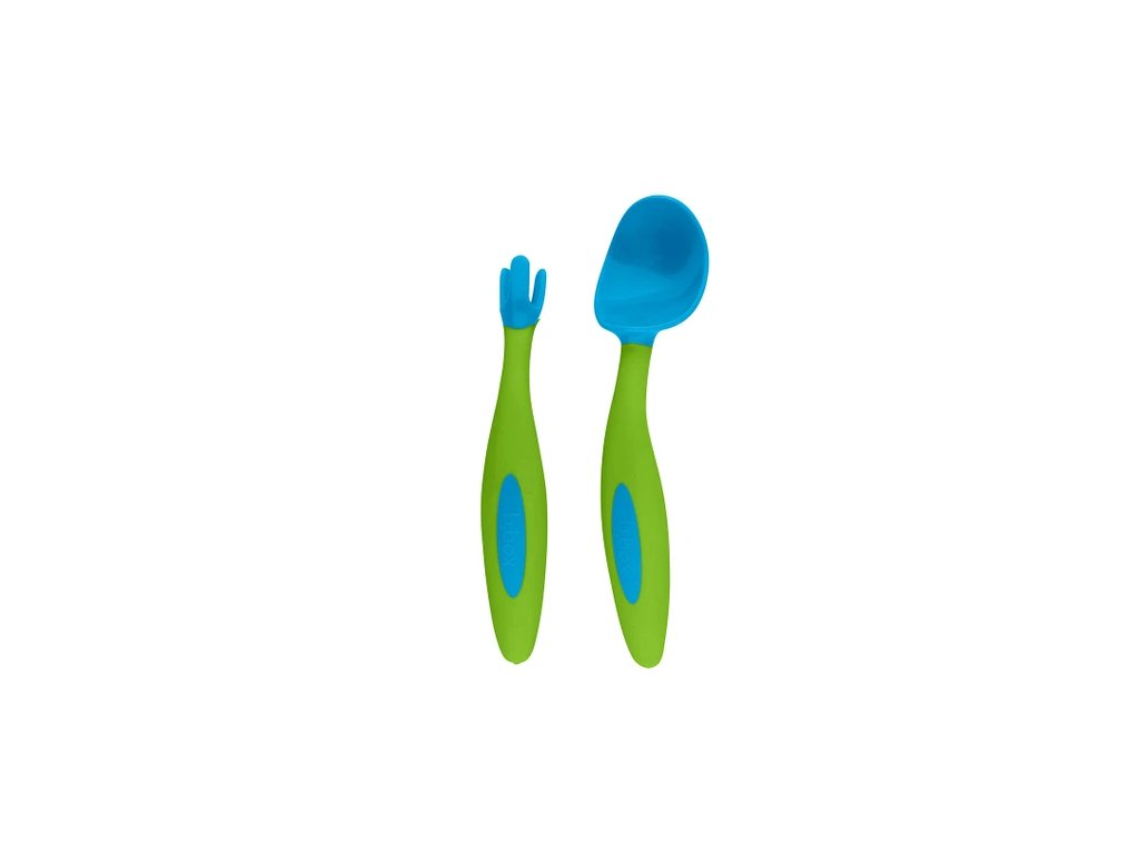 Patentovaný příbor navržený tak, aby skvěle padnul do ručičky a pusinky vašeho batolete. Zahnutá rukojeť speciální vidličky a lžičky podporuje soběstačnost dětí.