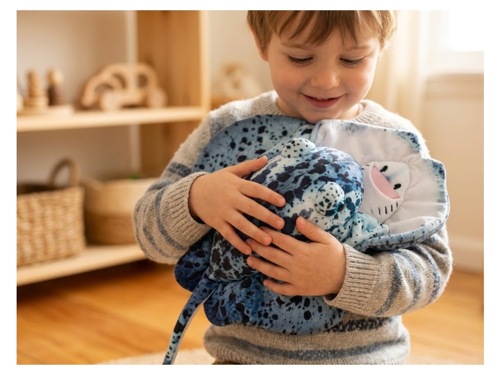 Objevte kouzlo oceánu s plyšákem rejnok 55 cm modrý, který vyniká svým precizním zpracováním a jemným materiálem. Díky svému typickému tvaru s roztaženými „křídly“ působí velmi realisticky a zároveň nabízí dostatek prostoru pro pohodlné objímání.