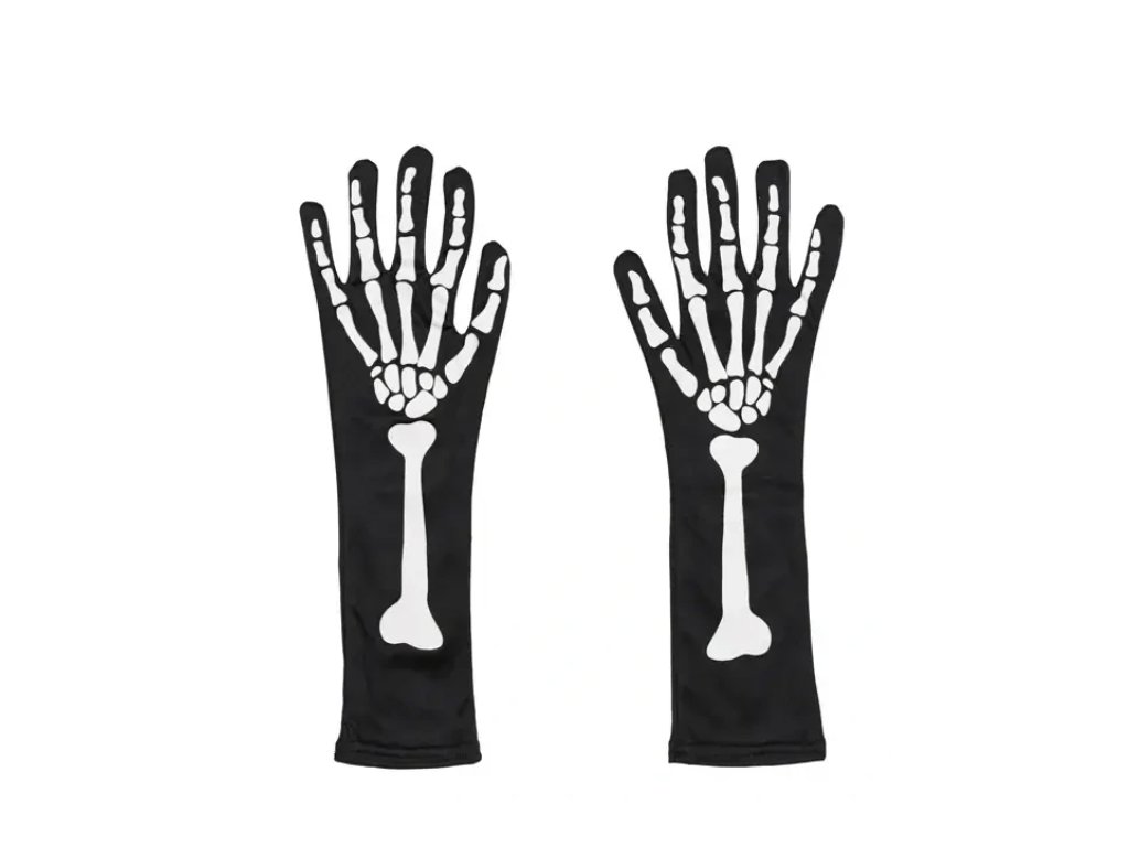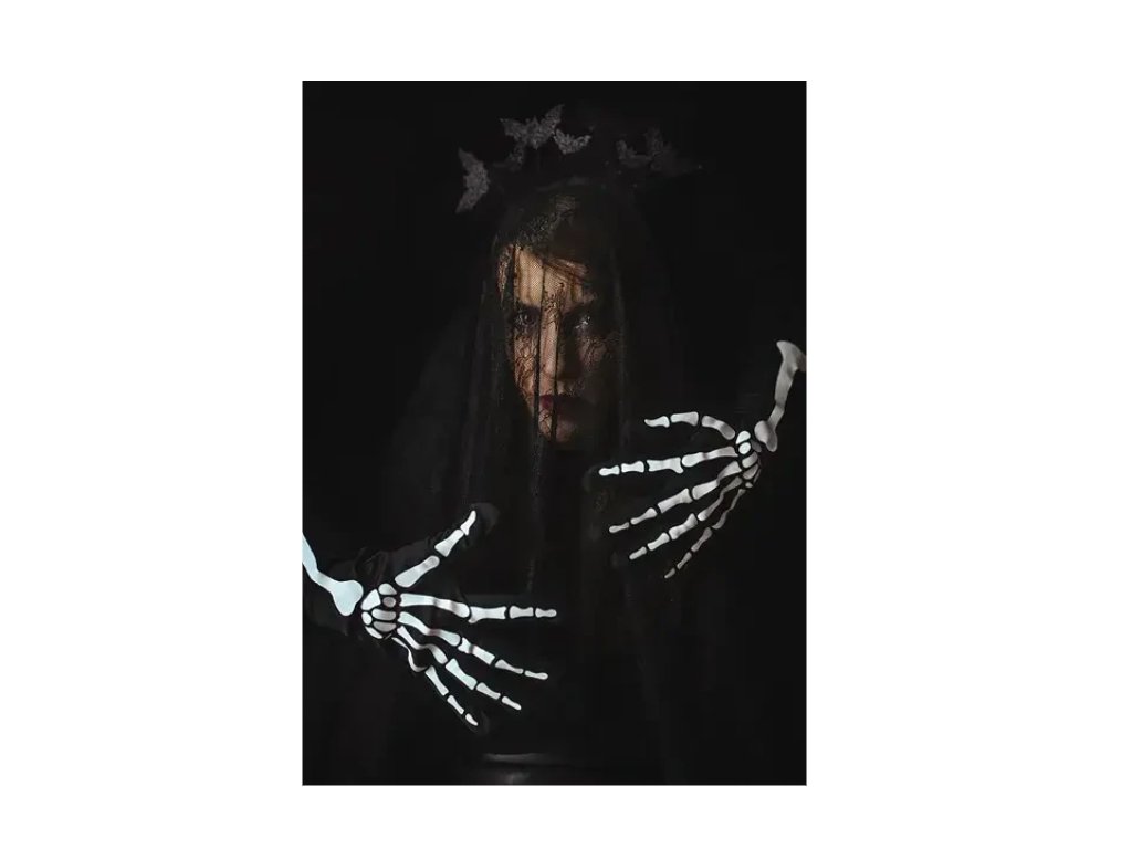 💀 Rukavice Kostlivec – svítící ve tmě jsou perfektním doplňkem pro každého, kdo chce zazářit (doslova!) na halloweenské párty nebo maškarním plese.