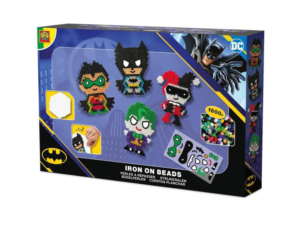 Staň se superhrdinou Gotham City 🦇✨ s SES Zažehlovacími korálky – Batman! Tato kreativní sada obsahuje šestihrannou destičku s kolíčky, 1600 zažehlovacích korálků, zažehlovací papír, arch samolepek a jednoduché pokyny pro nekonečné kreativní hraní 🎨💥.