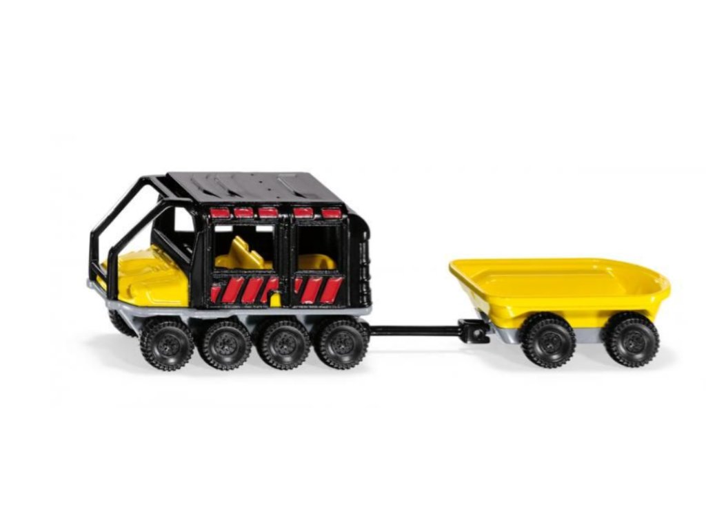 Vydejte se na dobrodružství s SIKU Blister – Argo Avenger s vlekem 🚜💨! Tento detailně propracovaný model nabízí osm poháněných kol, převodovku s off-road redukcí a robustní kovovou konstrukci, která chrání posádku 🛡️✨.