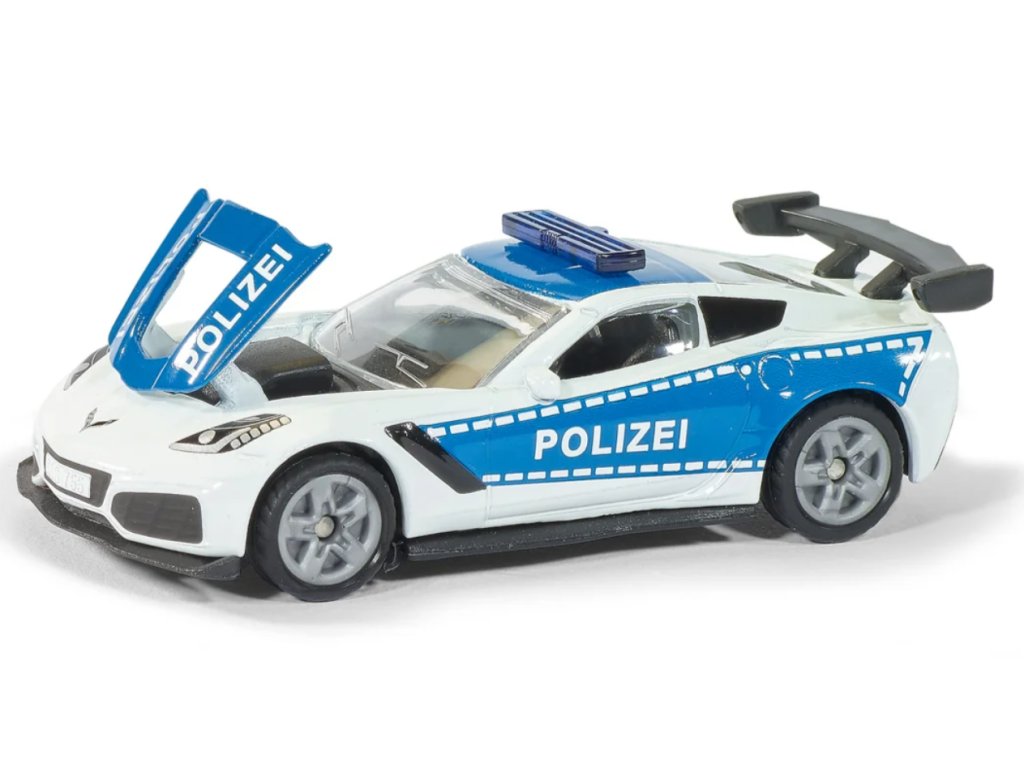 🚓 SIKU Blister – Policejní Chevrolet Corvette ZR1 je ideální pro každou napínavou honičku! Tento americký svalovec s motorem V8 a aerodynamickým tvarem zajišťuje obrovský výkon na silnici i mimo ni 🏎️💨.