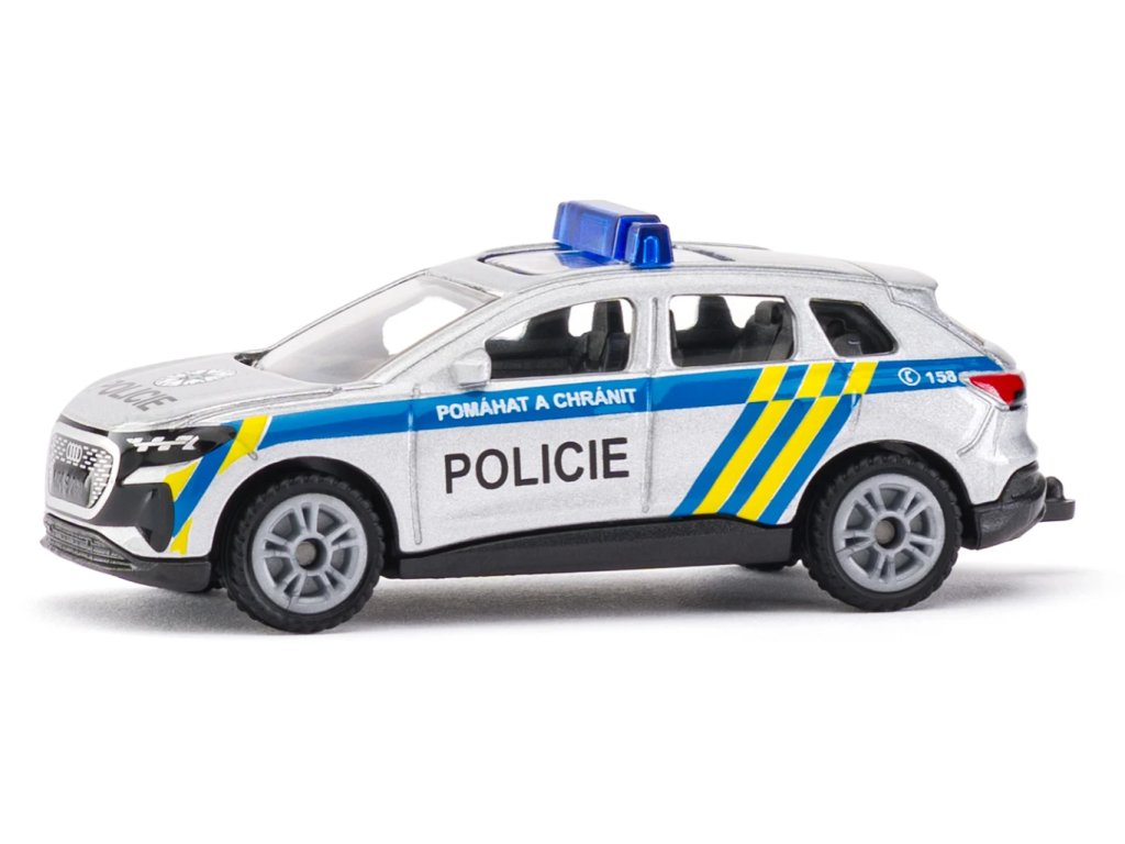 🚓 SIKU Policie – Audi Q4 e-tron (česká verze) je detailně propracovaný kovový model policejního vozidla, který věrně kopíruje skutečný český služební vůz. Model je vyroben z tlakově litých kovových a plastových komponentů, což zaručuje pevnost, kvalitu a dlouhou životnost.