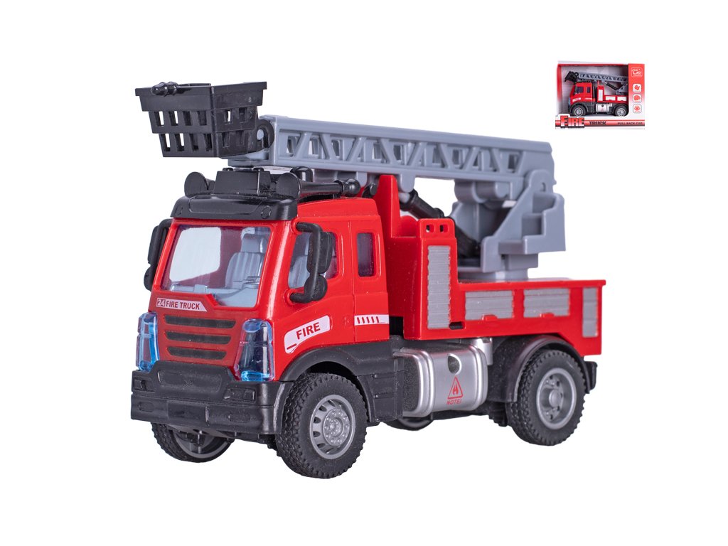 Auto hasičské 12cm zpětný chod s žebříkem v krabičce