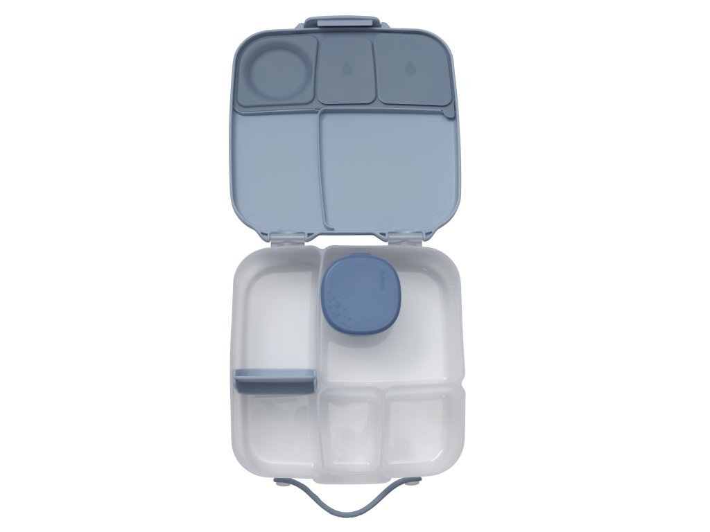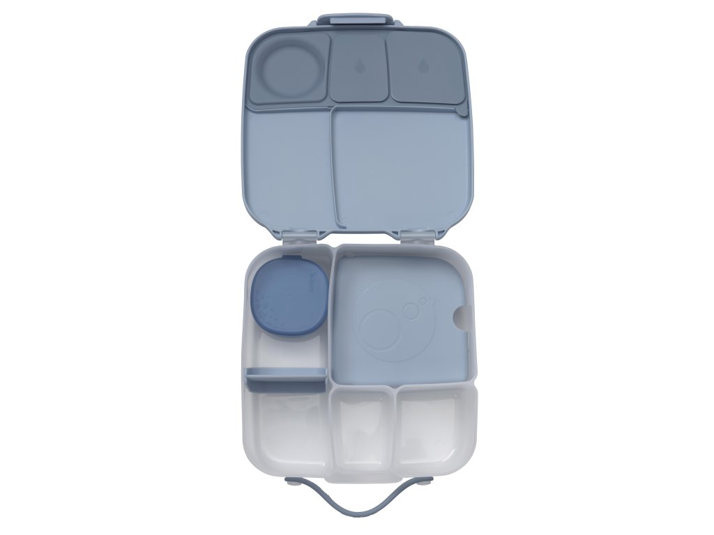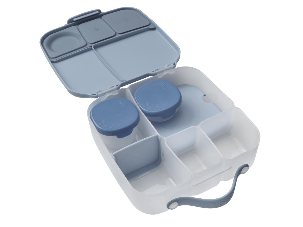 Stylový a prostorný svačinový box ve velkém rozměru, dostupný v elegantní šedé nebo svěží modré barvě. Ideální pro vaše obědy nebo svačiny na cestách.