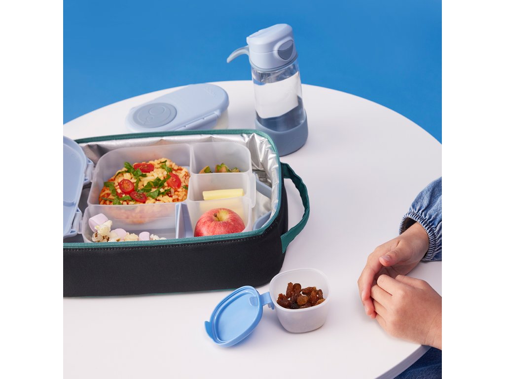 Praktický a prostorný svačinový box v modré/zelené barvě pro udržení vašich oblíbených pokrmů čerstvých po celý den. Ideální pro školní obědy i pikniky.