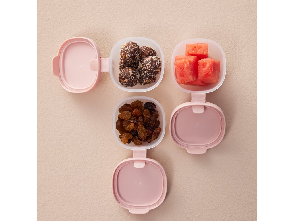 Tyto mini krabičky na svačiny budou ideální doplněk nejen svačinových boxů b.box, ale také pro samostatné použití. Silikonové těsnění udrží oblíbené svačinky vašich dětí déle čerstvé! Pro zajištění dokonalé těsnosti je důležité krabičky řádně uzavřít – ujistěte se, že máte správně nasazené těsnění (nápis b.box vždy na vnější straně) a při zavření uslyšíte charakteristické "cvaknutí".