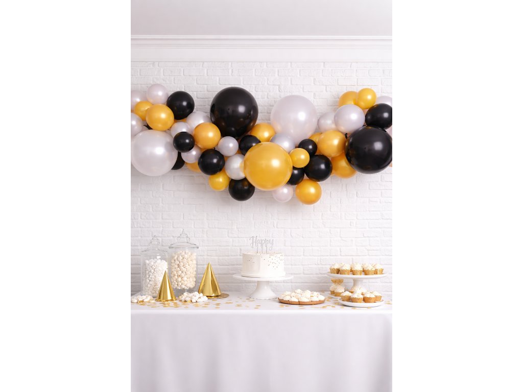 balónková girlanda černozlatá, girlanda z balónků, černá a zlatá výzdoba, dekorace na oslavu, pastelové balónky, slavnostní balónky, balónková dekorace, párty girlanda, set na balónkovou girlandu