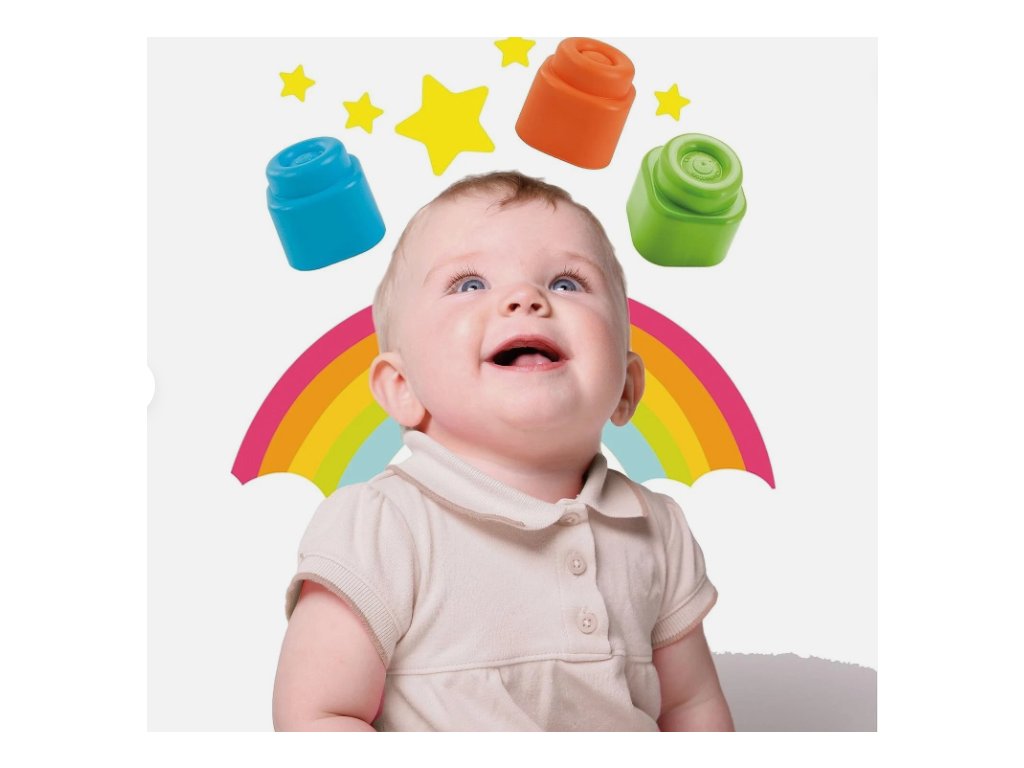Kostičky jsou vyrobené z měkkého, zdravotně nezávadného plastu, jsou příjemné na dotek, jemně voní 🌸 a lze je jednoduše mýt pod vodou 💧. Díky své bezpečnosti jsou vhodné už pro děti od 6 měsíců.