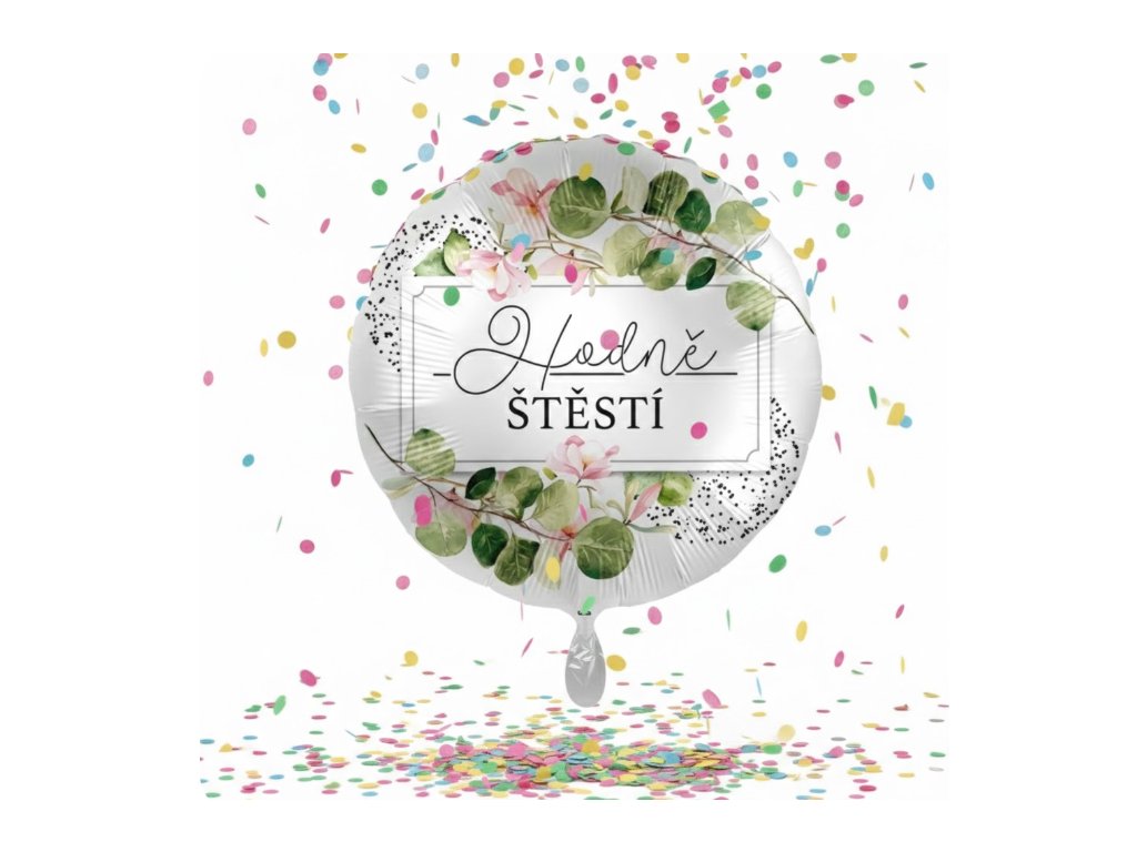 Fóliový balónik okrúhly Hodně ŠTĚSTÍ 43cm biely