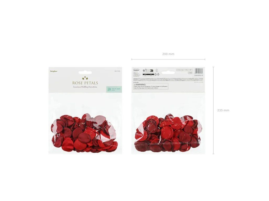 V balení najdete 100 ks realistických okvětních lístků, které působí jako živé – ideální pro svatby, oslavy výročí, Valentýna, romantické večeře, ale také pro fotokoutky, výzdobu stolů nebo jako rekvizita na focení.