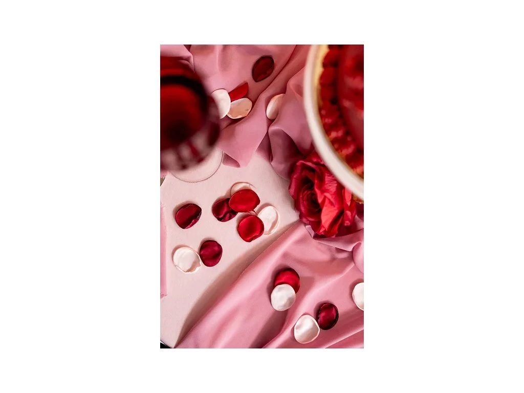 Klíčová slova: lístky růží, umělé okvětní lístky, dekorace na svatbu, romantická výzdoba, Valentýn, lístky růží 100 ks, výzdoba stolu, svatební dekorace, červené lístky, lístky na focení