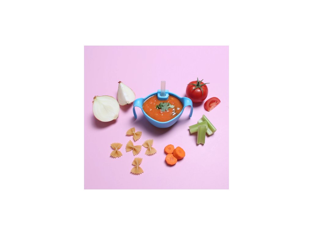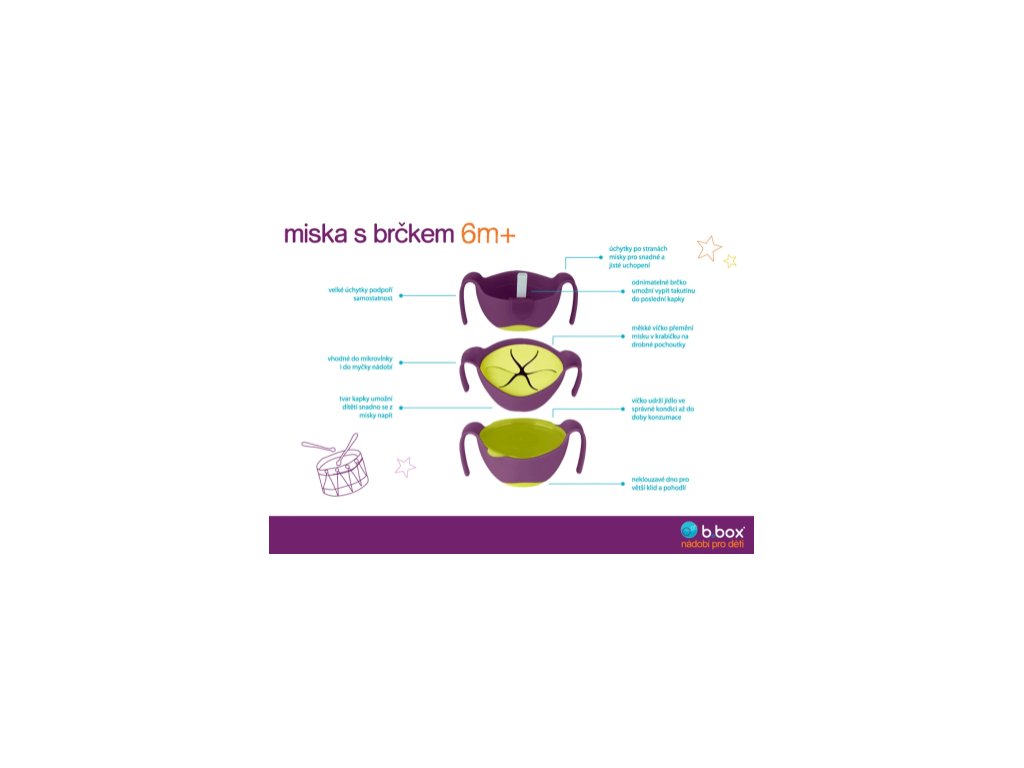 S mističkou a brčkem je jídlo zábava! Je tak jednoduché jíst/pít cereálie s mlékem nebo polévku. Víčko s otvorem, které lze na mističku nasadit, nedovolí malým hroznům a piškotům, aby se rozkutálely po podlaze. A víčko dělá z této mističky bezva krabičku na cestování.