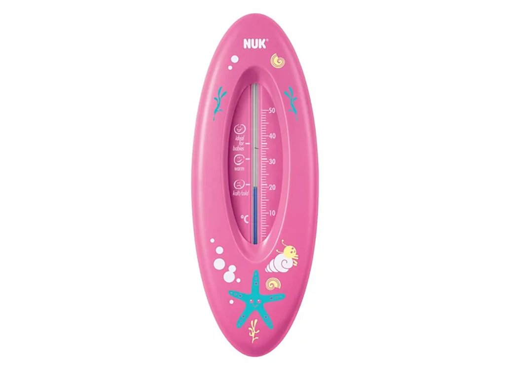 Teploměr do koupele pomáhá určit správnou teplotu vody na koupání. Zřetelné označení stupnice s neškodným řepkovým olejem použitým jako měřící tekutina.