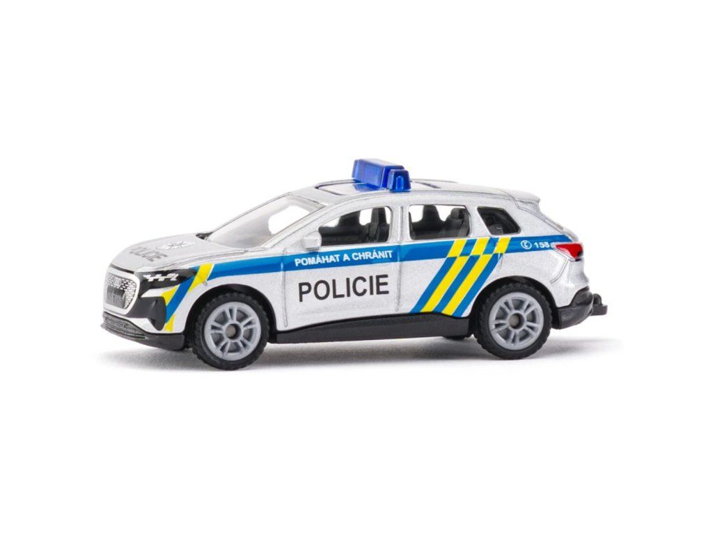 SIKU Polícia – Audi Q4 e-tron (česká verzia) je detailne prepracovaný kovový model policajného vozidla, ktorý verne kopíruje skutočné slovenské služobné vozidlo. Model je vyrobený z tlakovo zliatinových kovových a plastových komponentov, čo zaručuje pevnosť, kvalitu a dlhú životnosť.