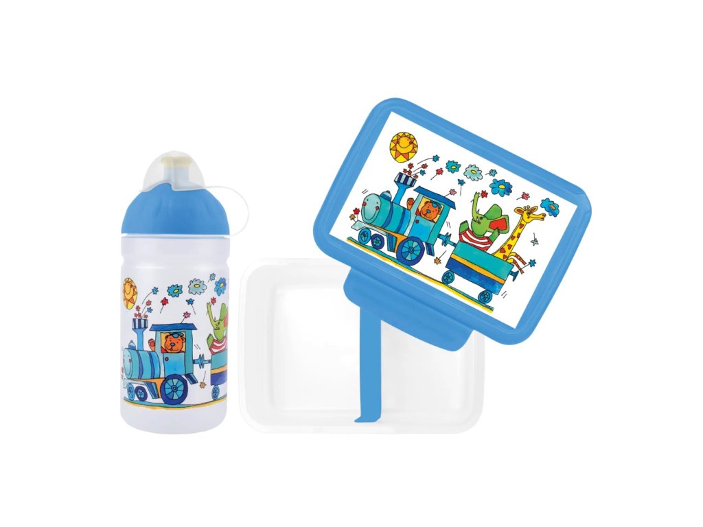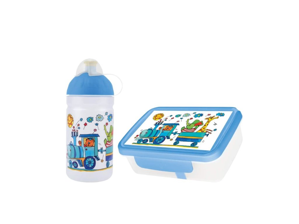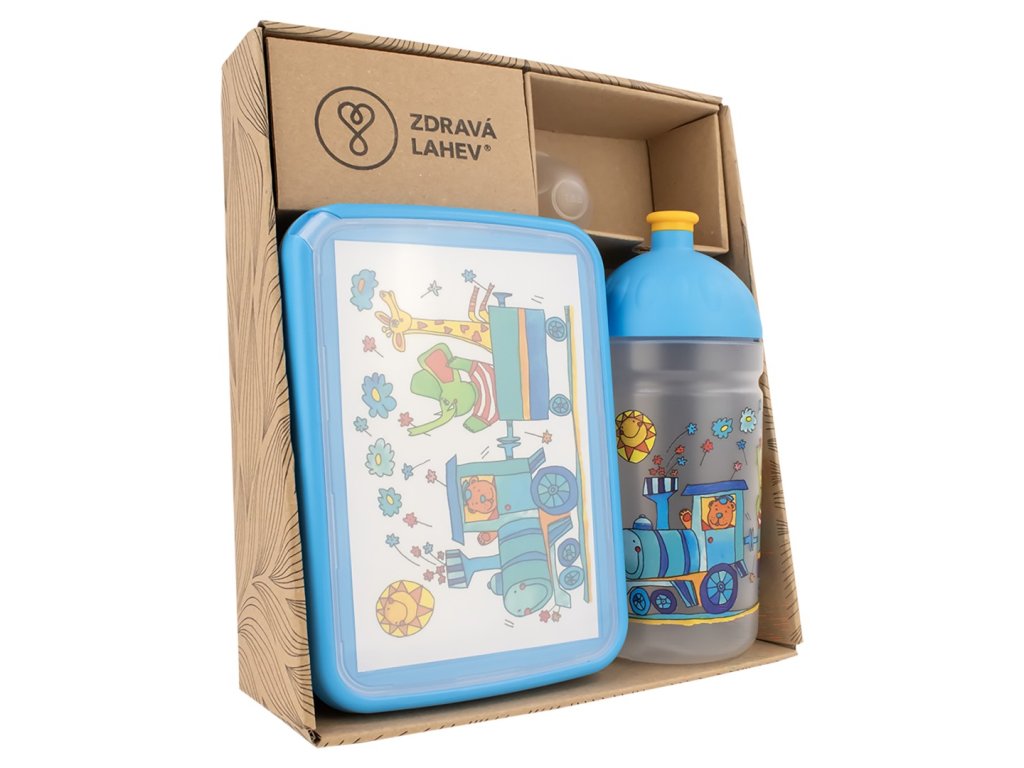 Potěšte děti hravým motivem Vláček se zvířátky v praktickém setu Zdravá lahev® a Zdravá sváča. Tento výhodný balíček obsahuje: