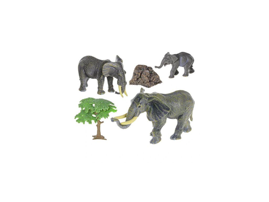 Obsah balenia: 3 figúrky slonov, 1 strom, 1 kameň