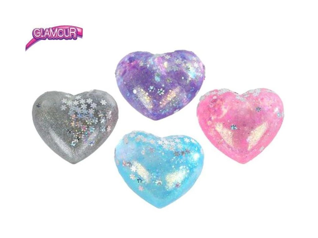 Srdce strečové 6 cm se třpytkami, čtyři barvy