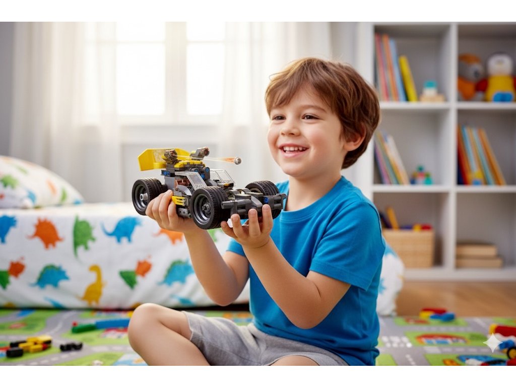Balení obsahuje 199ks stavebních dílků, ze kterých si mohou děti postavit sportovní auto v moderním designu na zpětný chod. Díly jsou jednoduché na složení i rozložení. Lze je kombinovat se stavebnicemi většiny ostatních značek.
