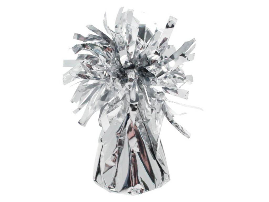 Stříbrné střapaté závaží o hmotnosti 130g. Udrží až 20 balónků plněné héliem o průměru 30cm.
