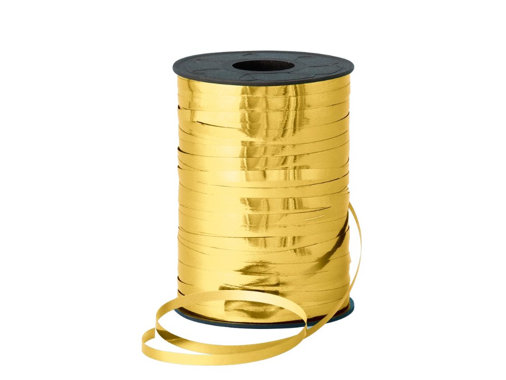 Vlastnosti produktu: Vázací stuha; Barva: metalická zlatá; Délka: 250 m; Šířka: 5 mm; Dodáváno na špulce; Praktické balení; Vhodné pro balení dárků, dekorace a tvoření.