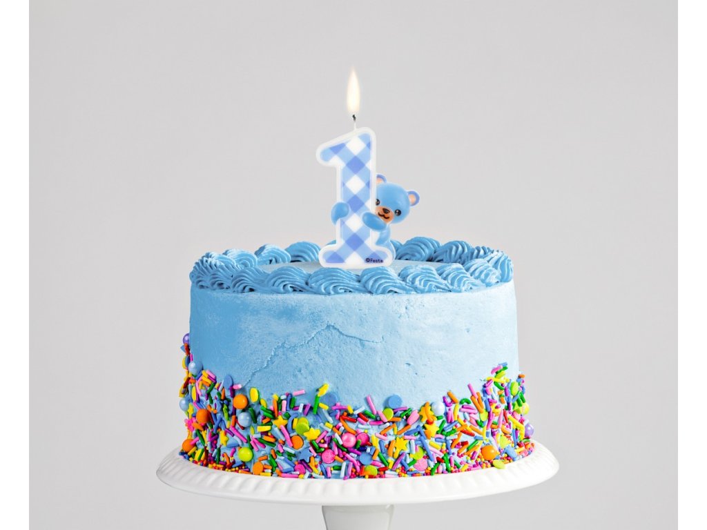 Svíčka na dort číslo 1 s Medvídkem Modrá