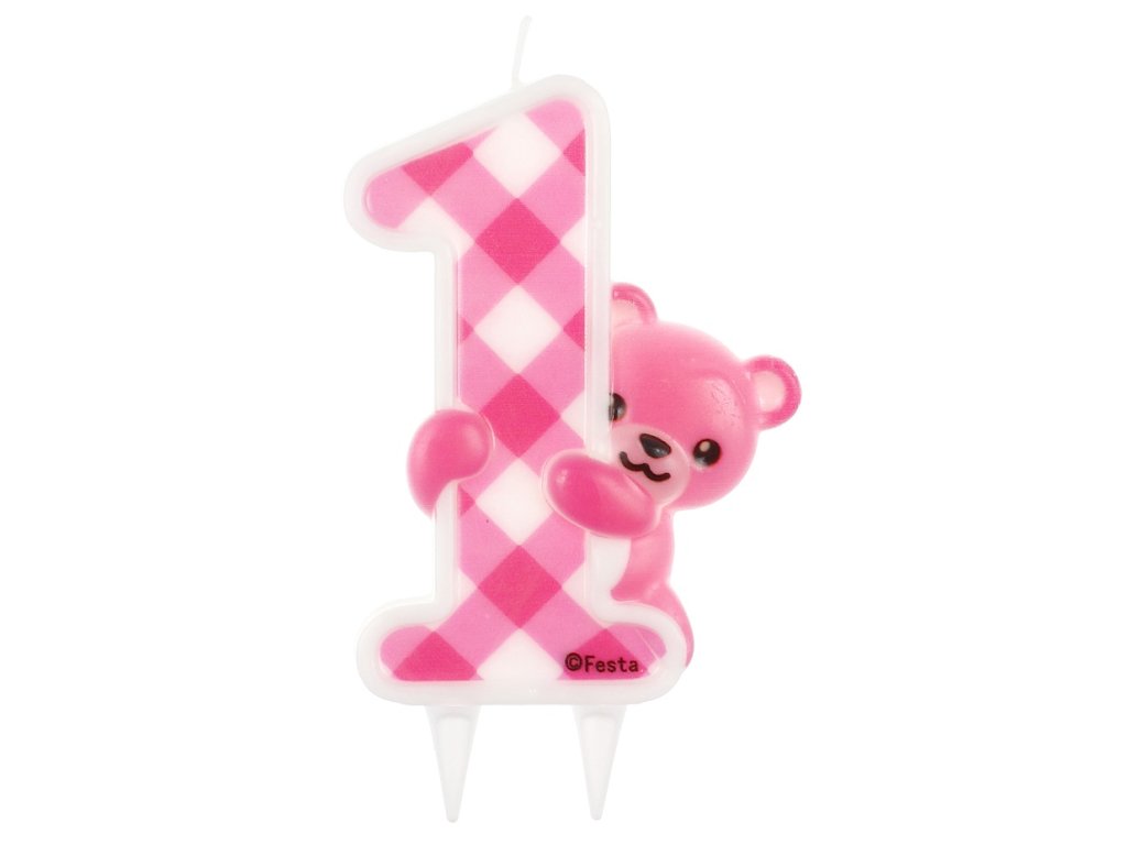 Svíčka na dort číslo 1 s Medvídkem Růžová