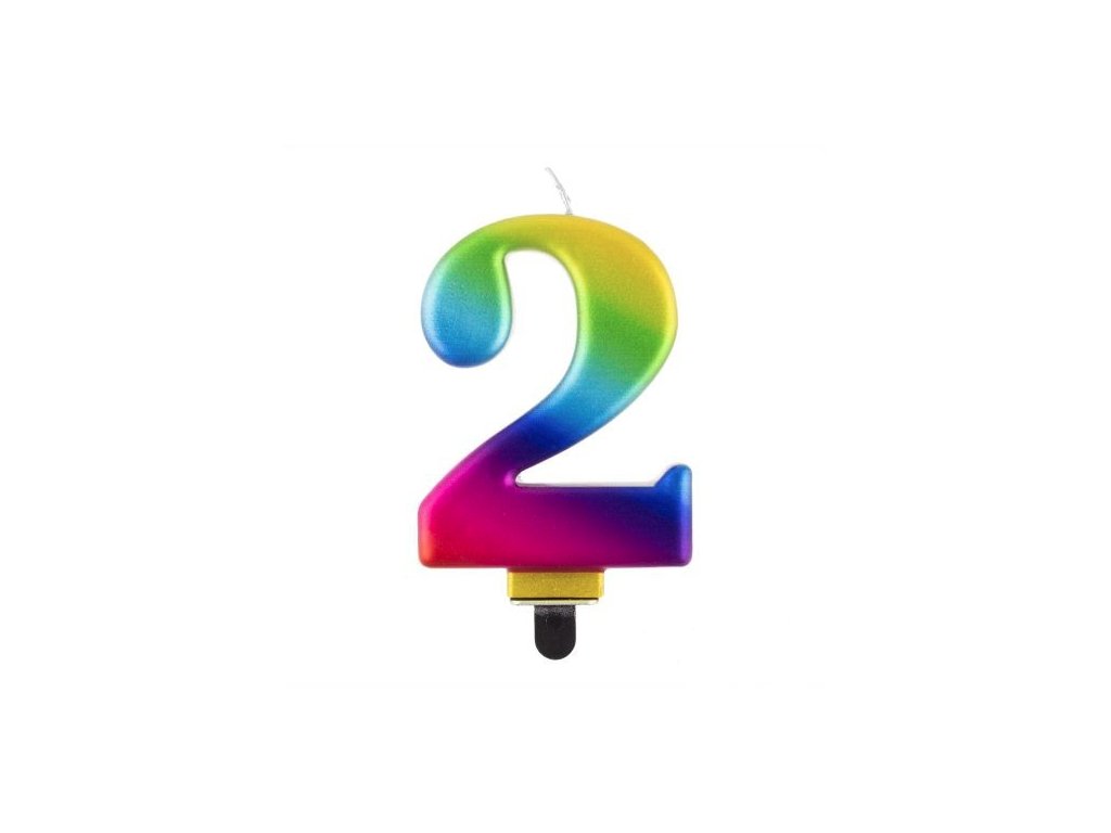 Ozdobte svůj dort stylově s touto metalickou svíčkou na dort číslo 2 🎂✨, která je dostupná ve dvou atraktivních barvách – stříbrné a duhové 🌈💎.