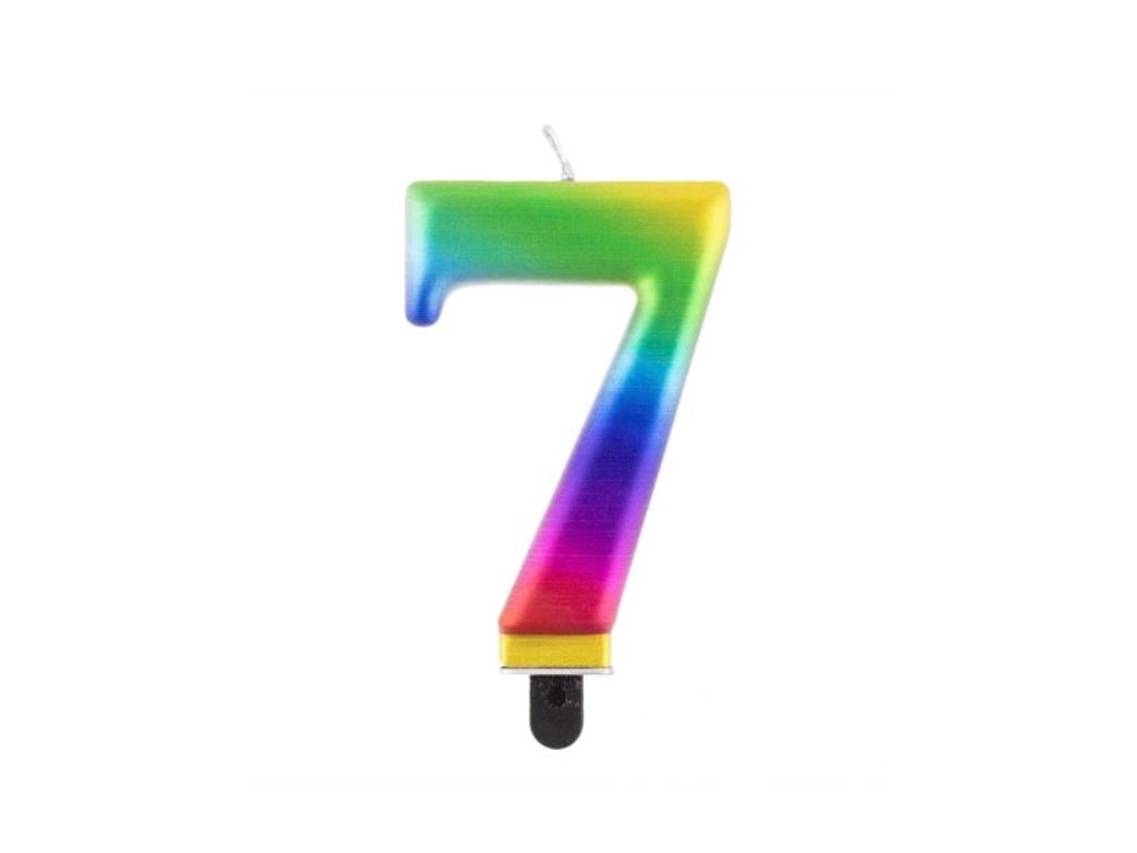 Ozdobte svůj dort stylově s touto metalickou svíčkou na dort číslo 7 🎂✨, která je dostupná ve dvou atraktivních barvách – stříbrné a duhové 🌈💎. Svíčka má výšku 8 cm a je vybavena praktickým zápichem, takže ji snadno umístíte na vrch dortu 🎉🕯️.