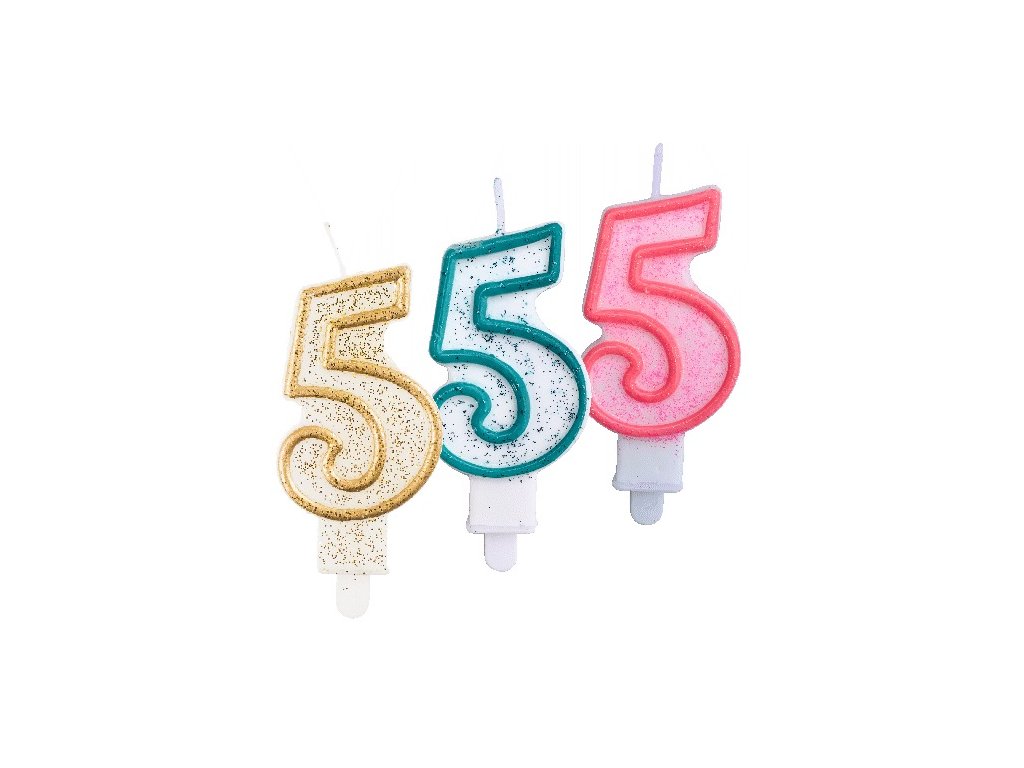 Svíčka na dort třpytivá 5 tři barvy 1ks