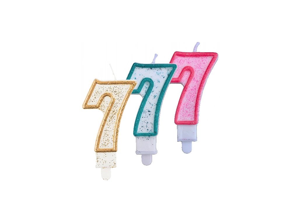 Svíčka na dort třpytivá 7 tři barvy 1ks