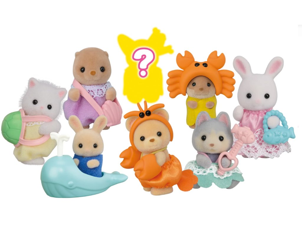 Objevte podmořský svět plný překvapení se sadou Sylvanian Families – Zvířátka podmořští kamarádi! 🌊🐚 Malá batolata Sylvanian Families se vydávají hledat poklad ukrytý v paláci mořských víl a každé z nich má svůj originální kostým nebo doplněk.
