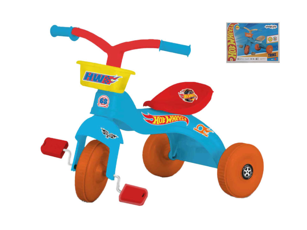 Součástí tříkolky je praktický košíček na řídítkách, do kterého si děti mohou uložit oblíbené hračky nebo drobnosti na cesty. Design inspirovaný značkou Hot Wheels potěší všechny malé fanoušky závodních aut a akční jízdy.