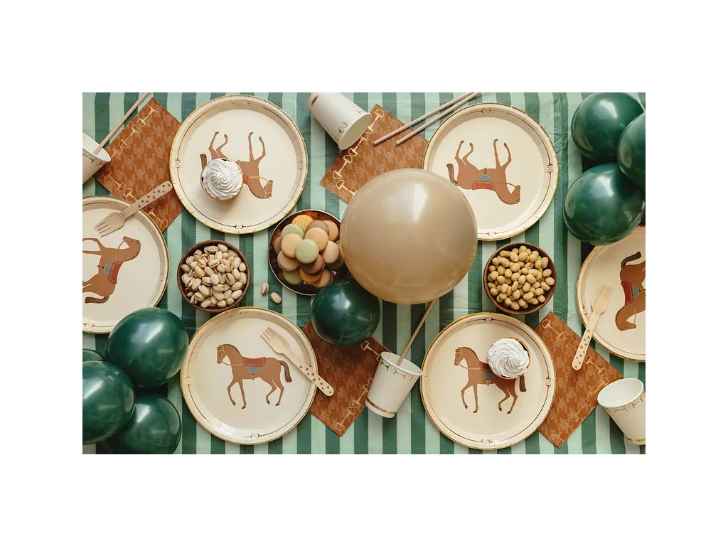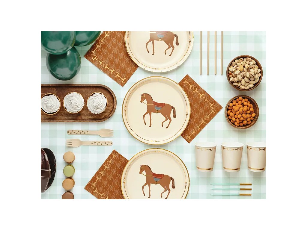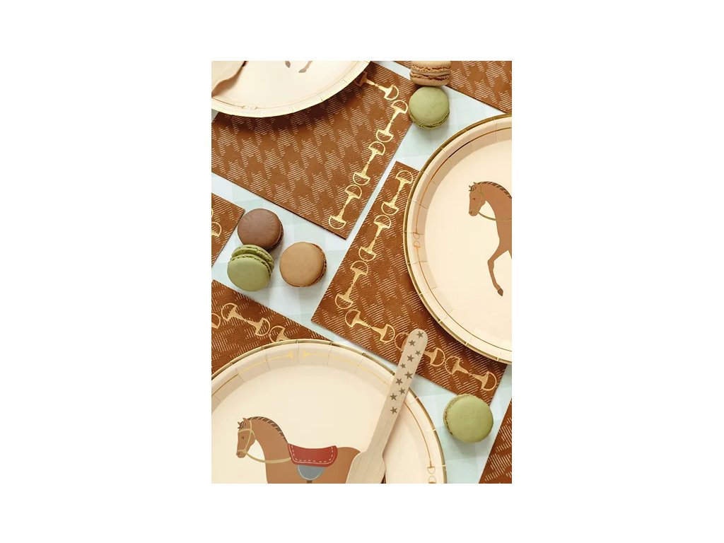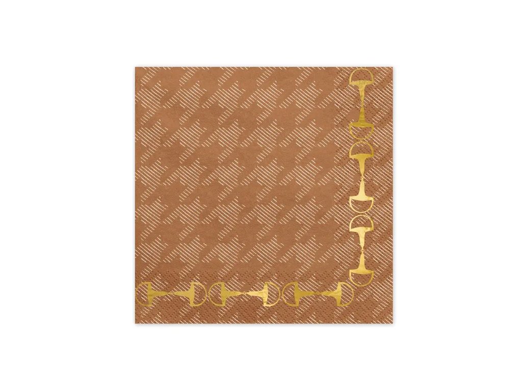 Dodejte svému stolu nádech elegance a stylu! ✨ Tyto hnědé ubrousky se zlatým motivem třmenů skvěle ladí s tématikou koní, venkovských oslav nebo přírodně laděných svateb. Jsou ideální pro slavnostní stolování, piknik nebo stylovou narozeninovou párty. 🎠
