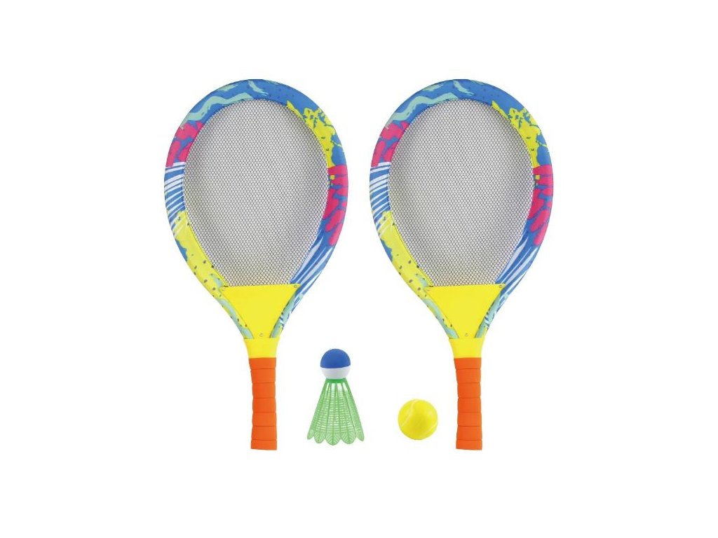 Tato krásně barevná dětská sada je ideální pro aktivní venkovní zábavu, ať už si děti chtějí zahrát tenis nebo badminton . Sada obsahuje dvě lehké rakety s měkkými pěnovými rukojeťmi , které perfektně padnou do dětských rukou a nekloužou. Výplet raket je extra měkký , což dětem výrazně usnadňuje trefit míček nebo košík. Děti tak snadno rozvíjejí koordinaci pohybů a motorické dovednosti . V balení je jeden plastový míček s průměrem 6 cm a jeden badmintonový košík o rozměrech 14 x 11 cm. Míčky jsou velmi lehké , což zajišťuje naprostou bezpečnost při hraní. Rakety mají rozměry 55 x 28 x 2 cm a jsou přizpůsobené pro dětské ruce. Sada je vhodná pro děti od 3 let , ale zabaví i starší sourozence. Díky své odolnosti je vhodná i pro časté používání na zahradě, v parku nebo na pláži. Hrát si mohou dvě děti najednou , čímž si zároveň posilují vztahy a učí se spolupráci. Barevné provedení je hravé a přitahuje pozornost , motivuje děti k pohybu na čerstvém vzduchu. Sada nevyžaduje složitou montáž – děti mohou začít hrát okamžitě. Hra podporuje zdravý pohyb a omezuje čas strávený u obrazovek. Celý set je lehký, takže si ho děti mohou snadno vzít kamkoliv s sebou. Je to ideální dárek pro malé sportovce i jako zábavná aktivita na dětské oslavy. Klíčová slova: dětská sada, badminton, tenis, pěnové rukojeti, lehké rakety, bezpečná hra, venkovní zábava, sportovní hračka, míček, košík, pro děti od 3 let, motorika, zábava venku, barevný design, hra pro dvaBuďte první, kdo napíše příspěvek k této položce.