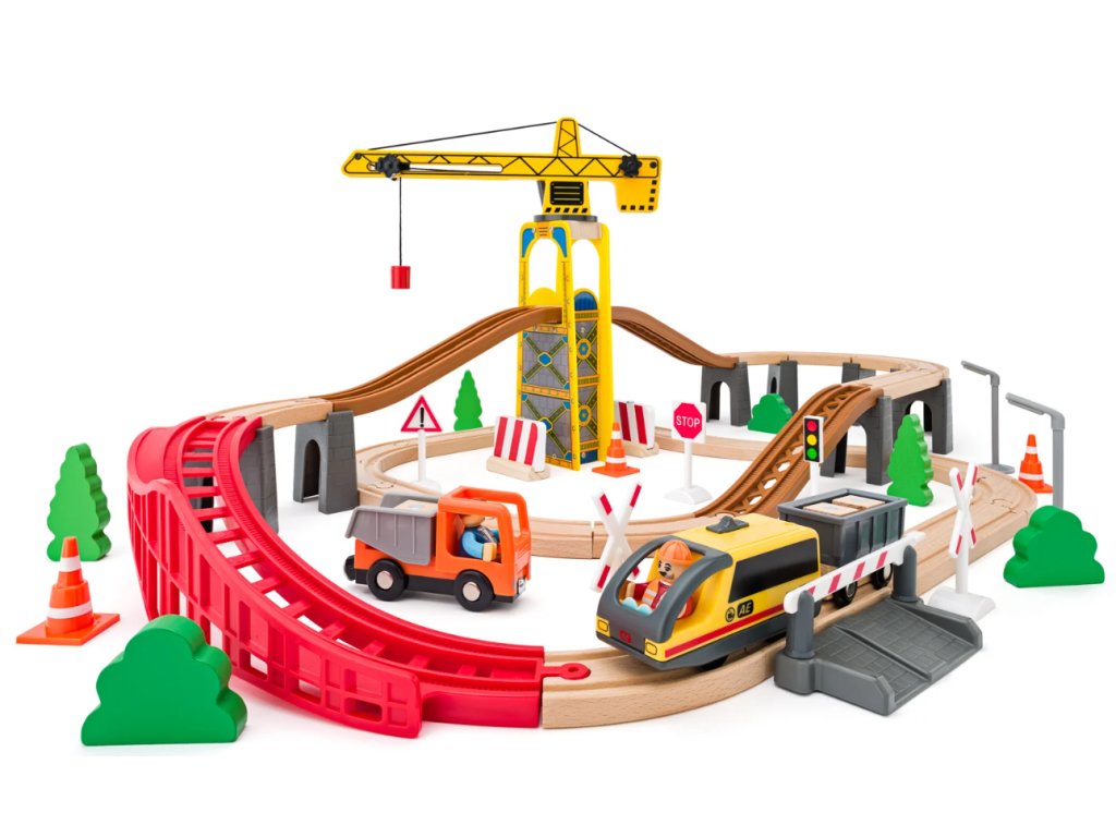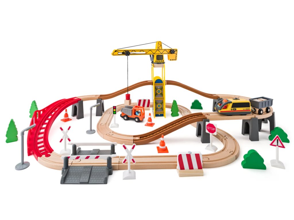 Tato vláčkodráha je ideálním dárkem pro malé milovníky vlaků, stavebních strojů a techniky, kteří rádi objevují a tvoří vlastní herní svět 🎁😊.