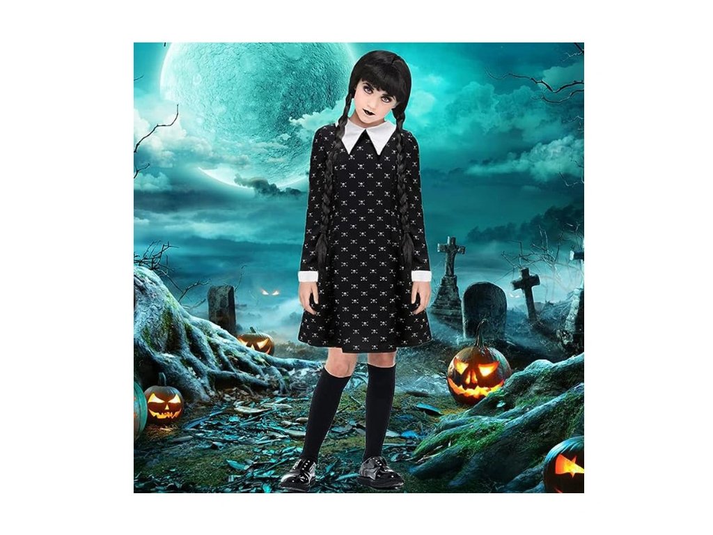 Vstupte do temného a elegantního světa Wednesday Addams s tímto dětským kostýmem inspirovaným populárním seriálem Wednesday! Tyto stylové černé šaty s ikonickým límečkem jsou perfektní volbou pro všechny nadšené fanynky tajemné a odvážné Wednesday. Kostým je ideální na karneval, Halloween, tematické oslavy nebo jen tak pro radost z hraní si na svou oblíbenou postavu.