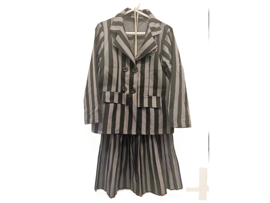 Dětský kostým Wednesday Addams – uniforma šedá pruhovaná přemění vaši malou slečnu v ikonickou postavu z oblíbeného seriálu 🖤. Kostým je vyroben z lehkého a pohodlného materiálu, který zajistí komfort i při delším nošení. Stylový design s pruhovanou uniformou zaručí, že vaše dítě v davu určitě vynikne.
