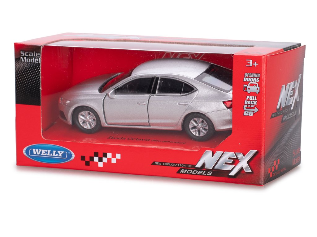 WELLY Škoda Octavia IV 12 cm – licenční kovový model se zpětným chodem, otevíracími dveřmi a detailním zpracováním.