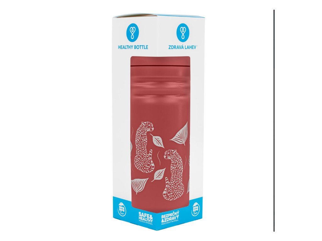 Zdravá lahev Gepard kombinuje praktickou funkčnost s hravým motivem a je ideální pro všechny malé i velké milovníky zvířat.