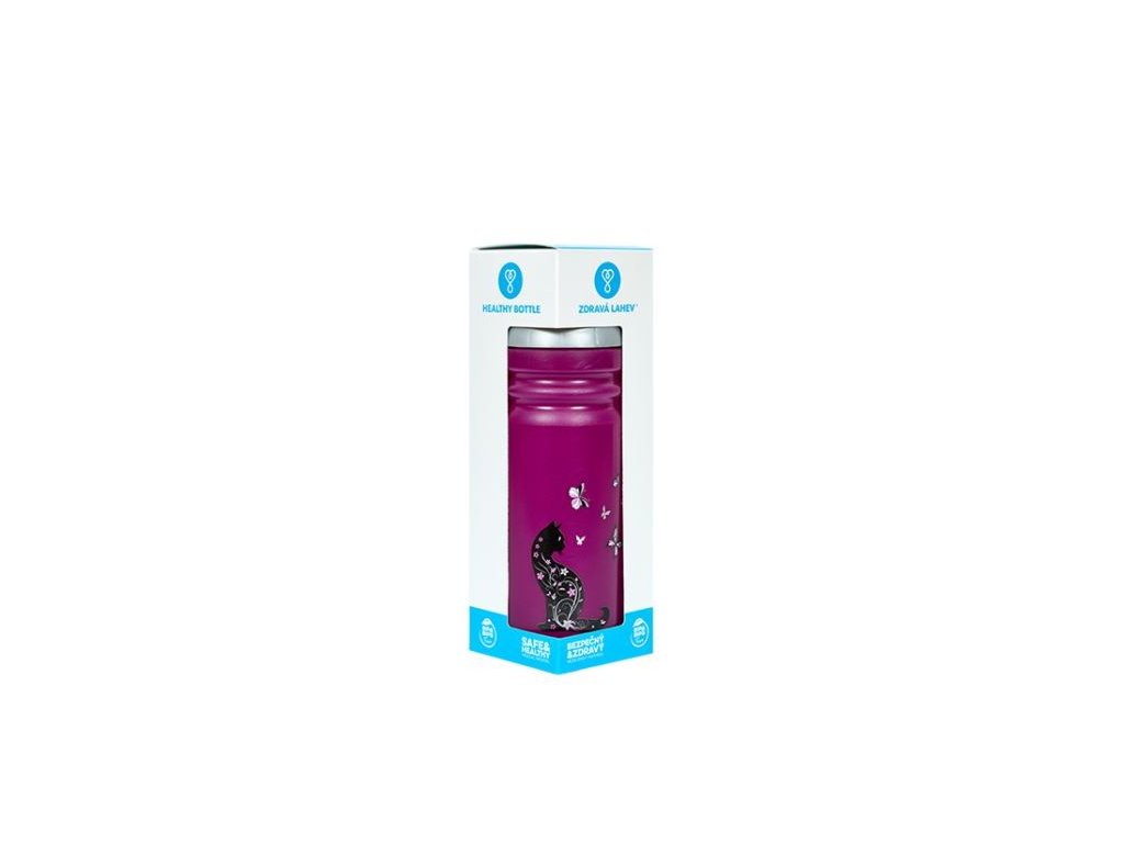 Zdravá lahev Kočka, dětská lahev s kočkou, školní lahev pro děti, zdravotně nezávadná lahev, česká lahev bez BPA, ekologická plastová lahev 0,7 l, lahev na pití s kočičím motivem, lahev do školy i na výlety, odolná lahev s kočkou.