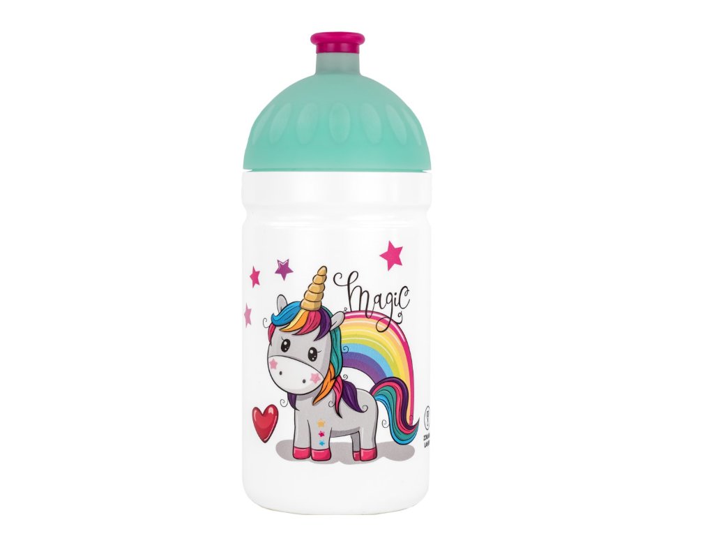 Zdravá lahev Magic Unicorn, dětská lahev jednorožec, lahev pro děti 0,5l, zdravotně nezávadná lahev, česká lahev bez BPA, plastová lahev s jednorožcem, ekologická lahev, školní lahev pro děti, lahev na pití Unicorn